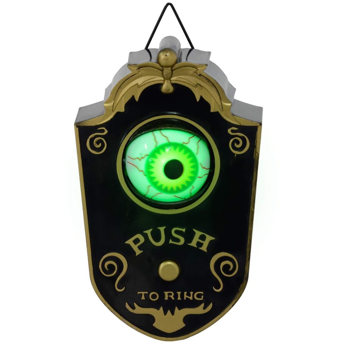 18cm Halloween dekoration dörrklocka dekoration med LED-ljus, ljudfunktion, ytterdörr dekoration med animerad ögonglob, trädgård