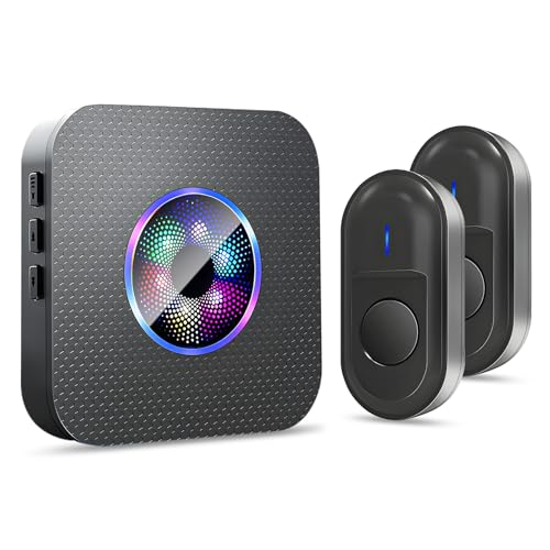 Hakeeta Trådlös dörrklocka för äldre/döva människor, 7 färger ljus blixt + musik dörrklocka, hem trådlös musik dörrklocka, distansöverföring 30 ~ 50 m