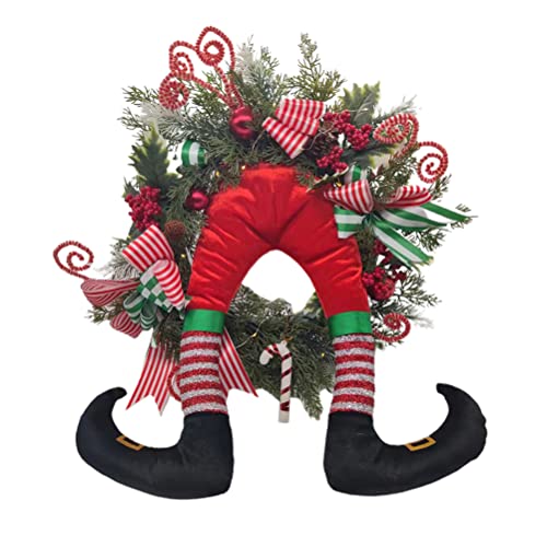 Topyond julkrans, Grinch jul dörrkrans med girland, festlig dörrdekor för ytterdörr och fönster, unik juldekoration för helgjubel
