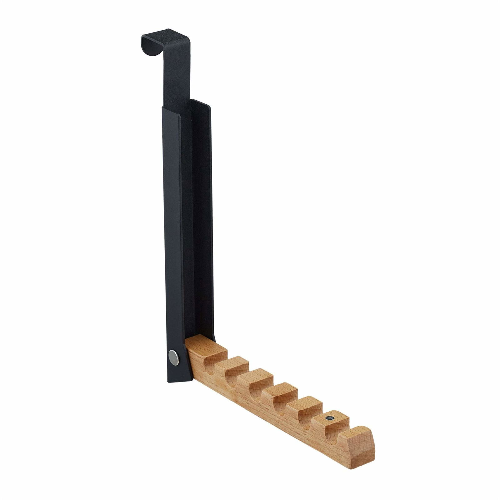 Relaxdays Vikbar, för upphängning, dörrkrok för 6 klädhängare, metall och trä, för 2 cm dörrfals, svart
