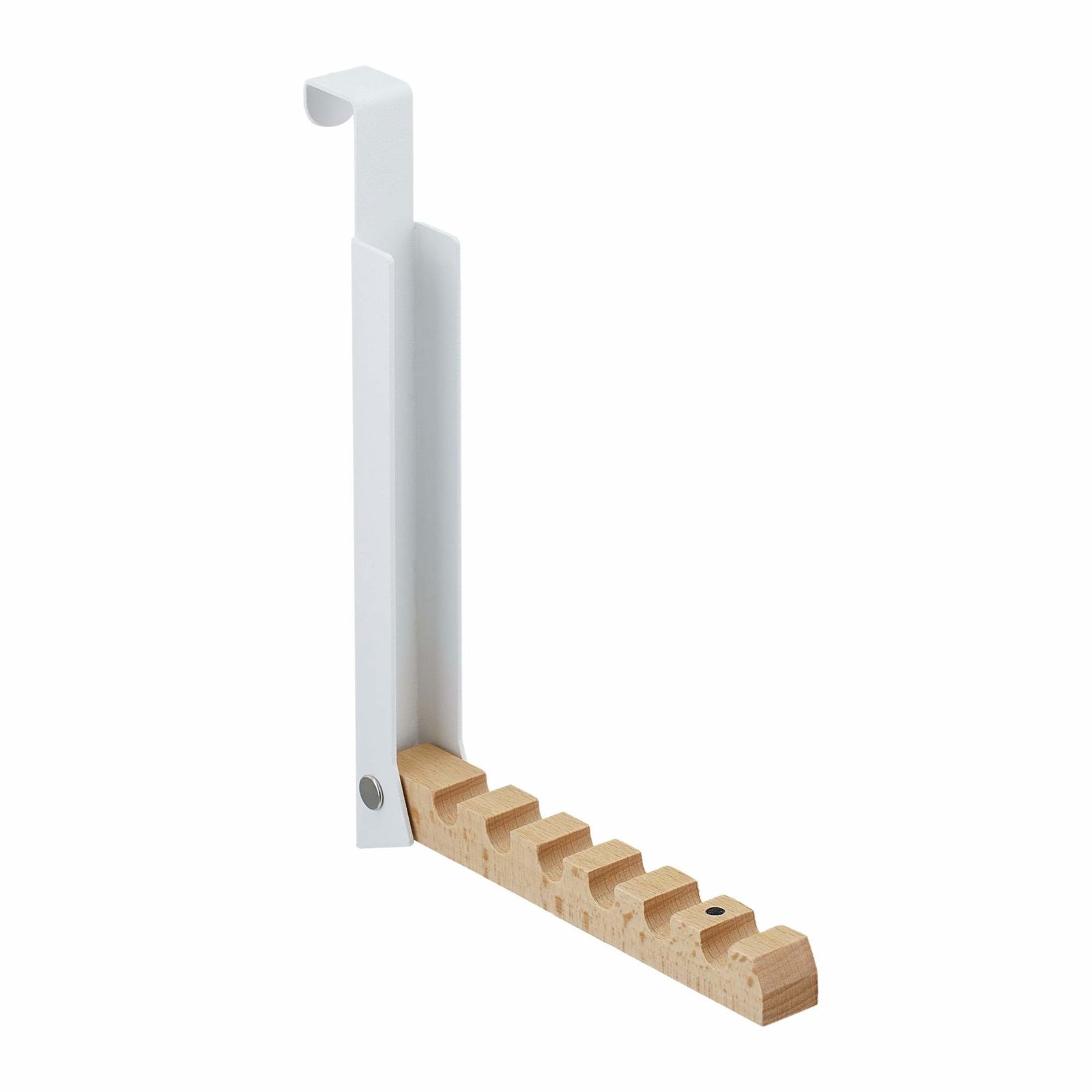 Relaxdays Vikbar, för upphängning, dörrkrok för 6 klädhängare, metall och trä, krokar för 2 cm dörrfals, vit
