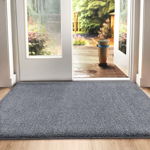 DEXI Dörrmatta Inomhus 80 x 120 cm, Smutsfångare Halkfri Entrématta Låg Profil Tvättbar, Absorberande Dörr Matta för Framdörren, Entré, grå
