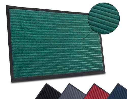 HANSE Home High Low Striped matta dörrmatta för inomhus- och utomhusbruk – smutssamlande matta, halkfri, tvättbar och väderbeständig, dörrmatta för entré- och utomhusbruk, 80 x 120 cm, smaragdgrön
