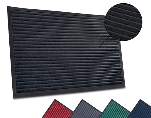 DEXI Dörrmatta 80 x 120 cm, halkfria dörrmattor utomhus smutsfångare, låg profil tvättbara entrématta för entré, uteplats, trädgård, svart