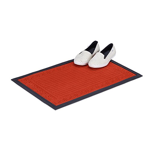 Relaxdays Gummi, dörrmatta med antikt mönster, halkfri gummimatta för inomhus- och utomhusbruk, ytterdörr, 40 x 60 cm, röd golvmatta gummi rektangulär grön, polyesterfilt, 40 x 60 x 0,3 cm