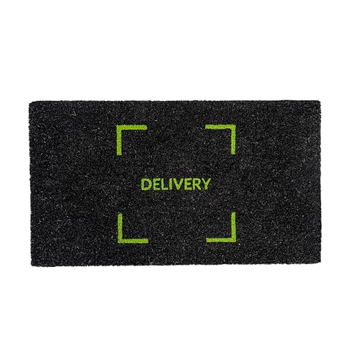 Fisura – Original dörrmatta "Delivery" av kokos med halkfri PVC-bas. Dörrmatta för entrén. Svart och grön dörrmatta. Handmålad. Storlek: 70 cm x 40 cm.