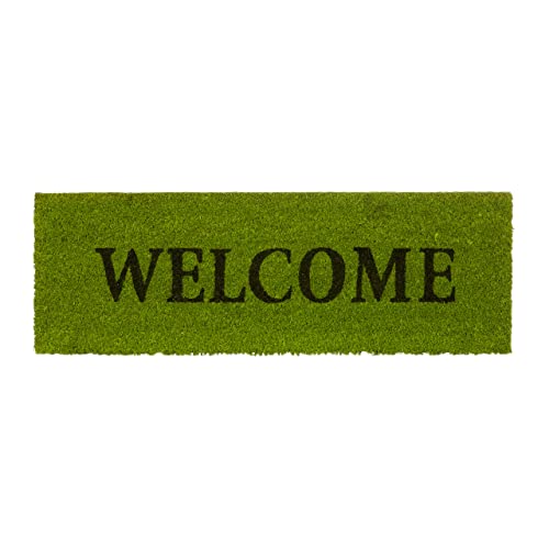 Relaxdays smal kokosmatta dörrmatta tryck halkskydd gummi PVC undersida lång välkomstmatta idealisk för balkongen, uteplatsen, hallen, Veranda 1,5 x 75 x 50 cm, grön