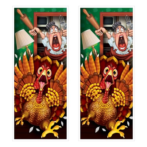 Beistle 90511 2 delar vild kalkon glad Thanksgiving dörrskydd inomhus/utomhus hängande semester skörd dekor för höstfester, plast, flerfärgad