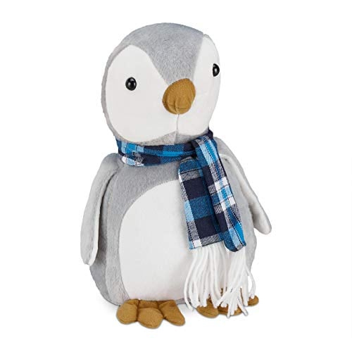 Relaxdays Dörrstopp pingvin, tyg, för golv, inomhus, dekorativ djurdörrstötfångare, 26 cm hög, mjuk, tung, vit-grå, 1 st