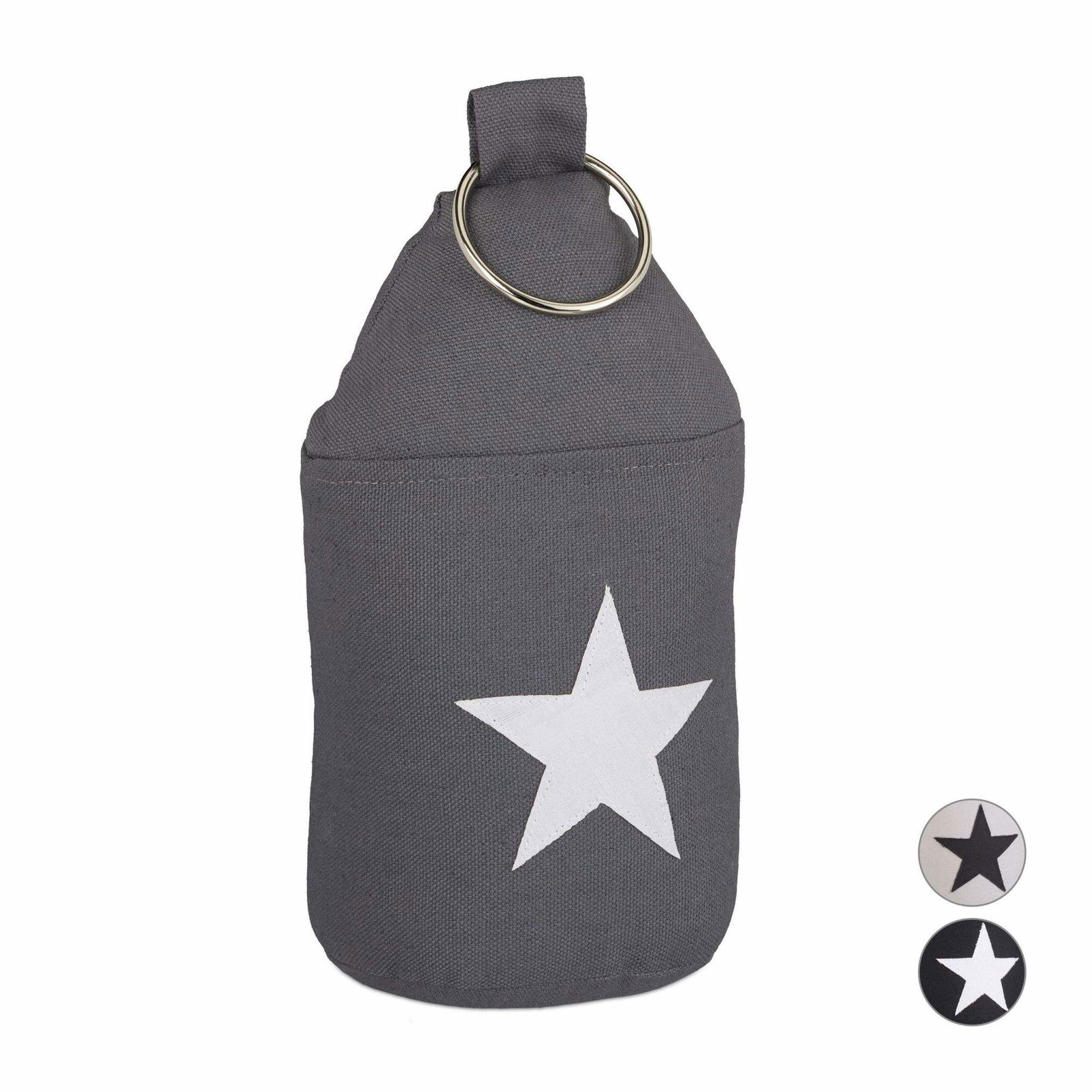 Relaxdays Dörrstopp stjärna, dörrbuffert tyg, dörrpåse golv, extra hög, med handtag, dekorativ, H x D 23 x 11 cm, mörkgrå