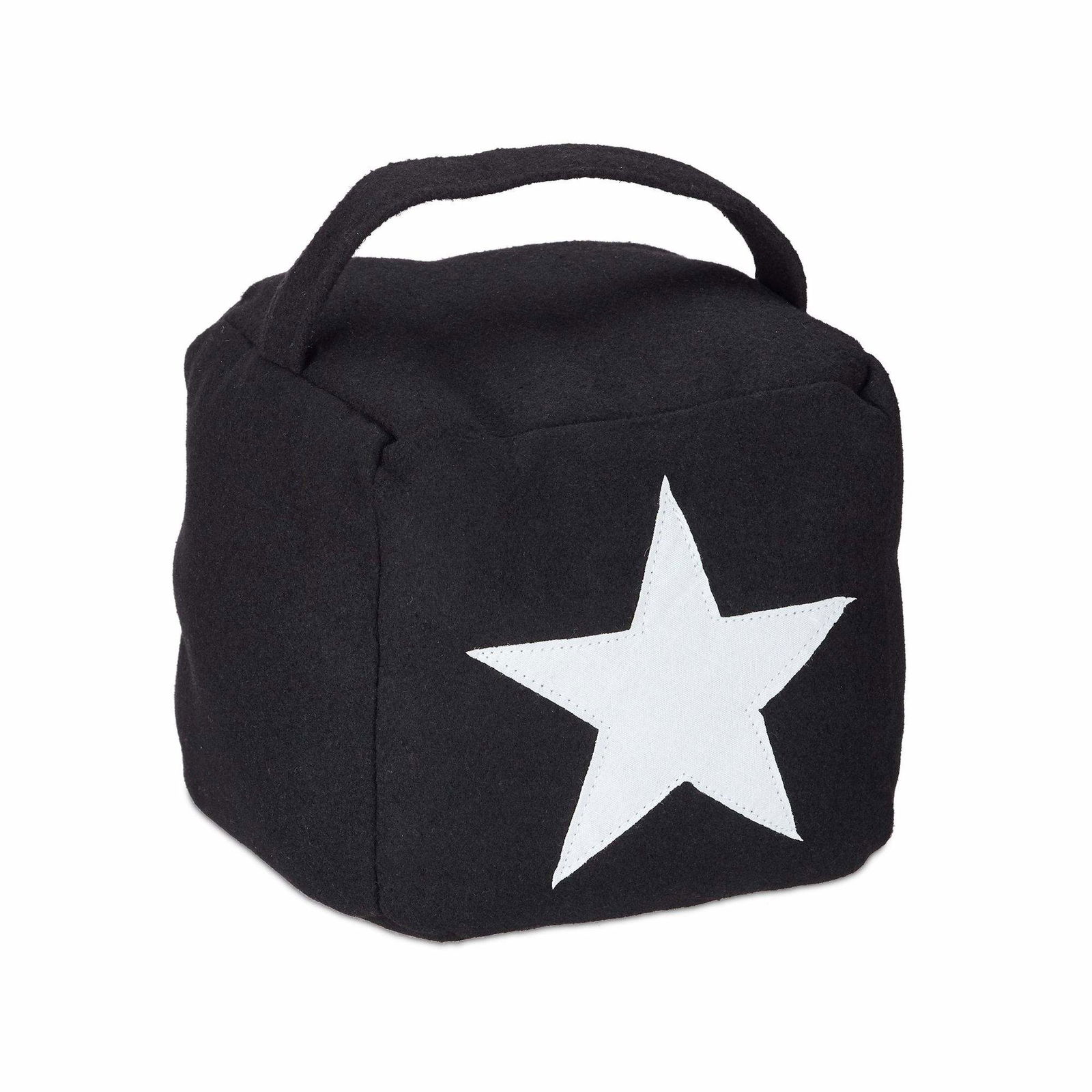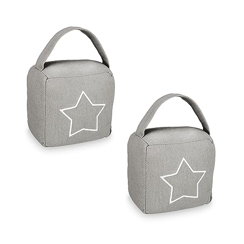 Relaxdays Dörrstopp, uppsättning av 2, stjärnmotiv, H x B x D: 13 x 13 x 8,5 cm, fristående, med handtag, grå/vit, polyester, sand