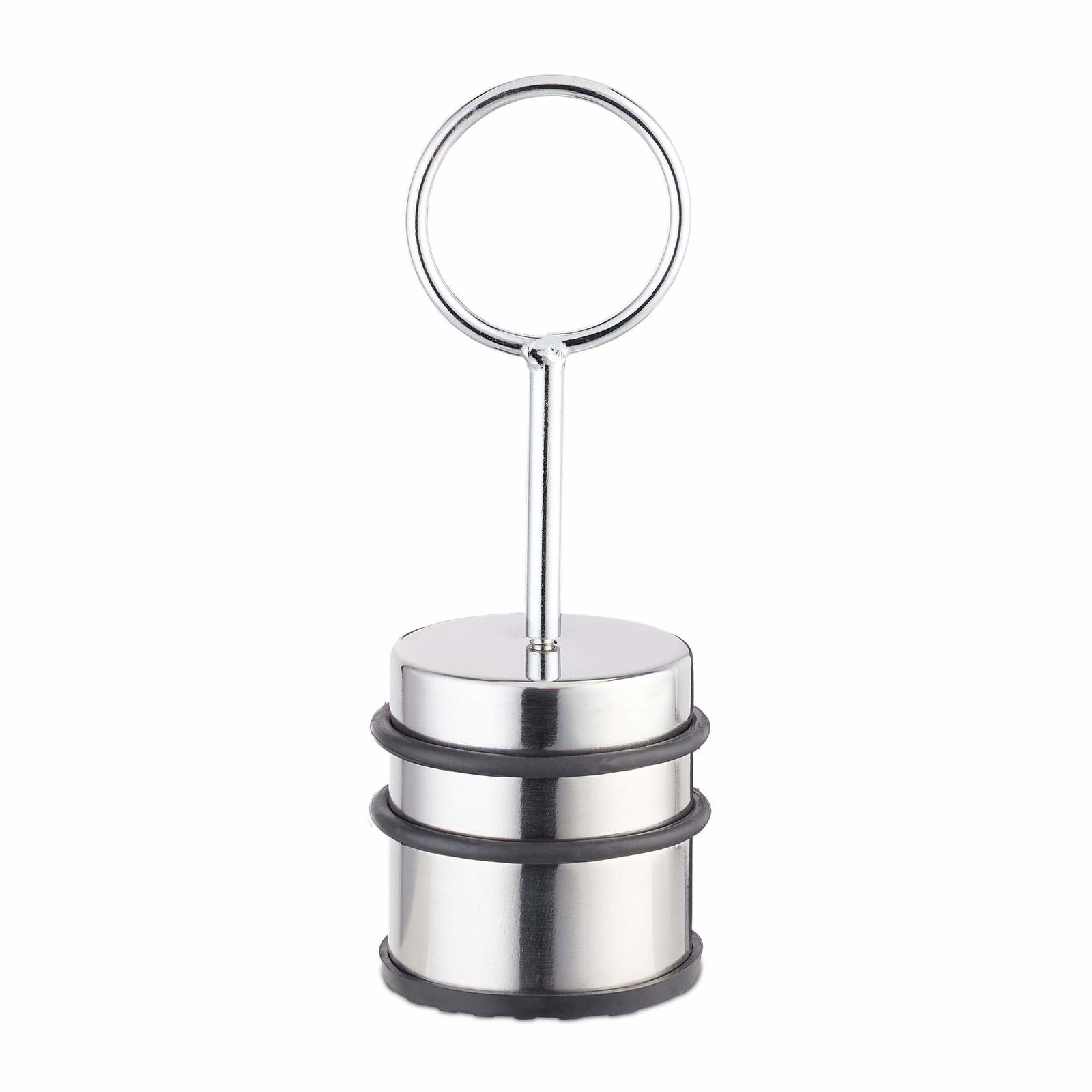 Relaxdays Dörrstopp med handtag, för dörr och fönster, hög, rund, inomhus, gummi, rostfritt stål, golvdyna, Ø 7 cm, silver, 1 st