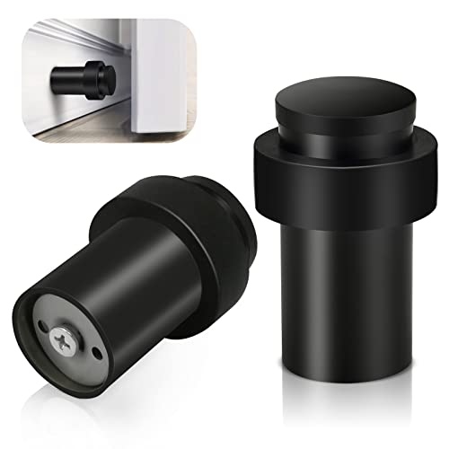 TOKPLNU Dörrstoppare, golvmonterade dörrstopp svart slitstark dörrstopp rostfritt stål moderna dörrstopp stötfångare väggskydd dekorativt massivt gummi hög golvdörrstopp för kjolar, 2-pack