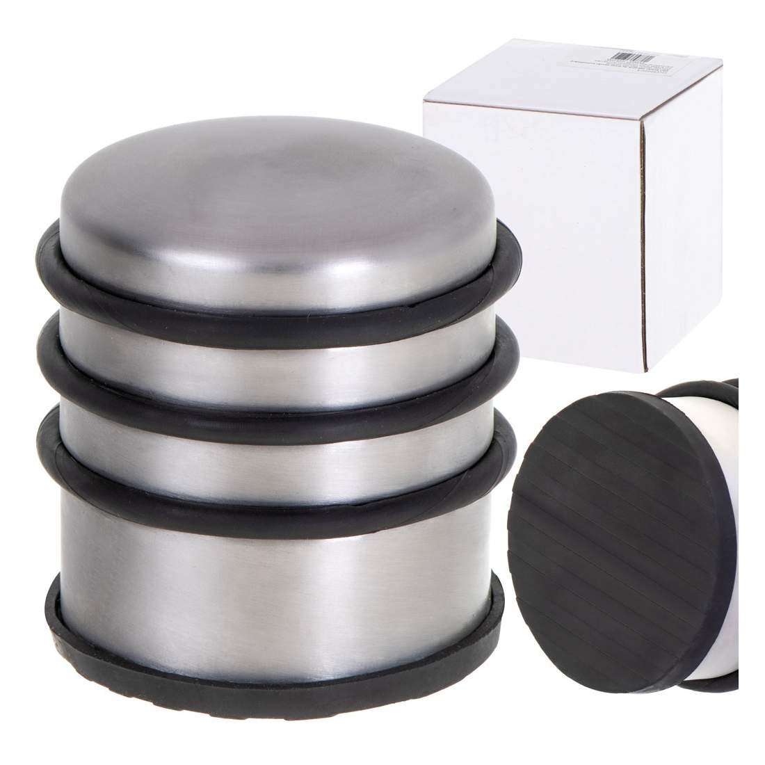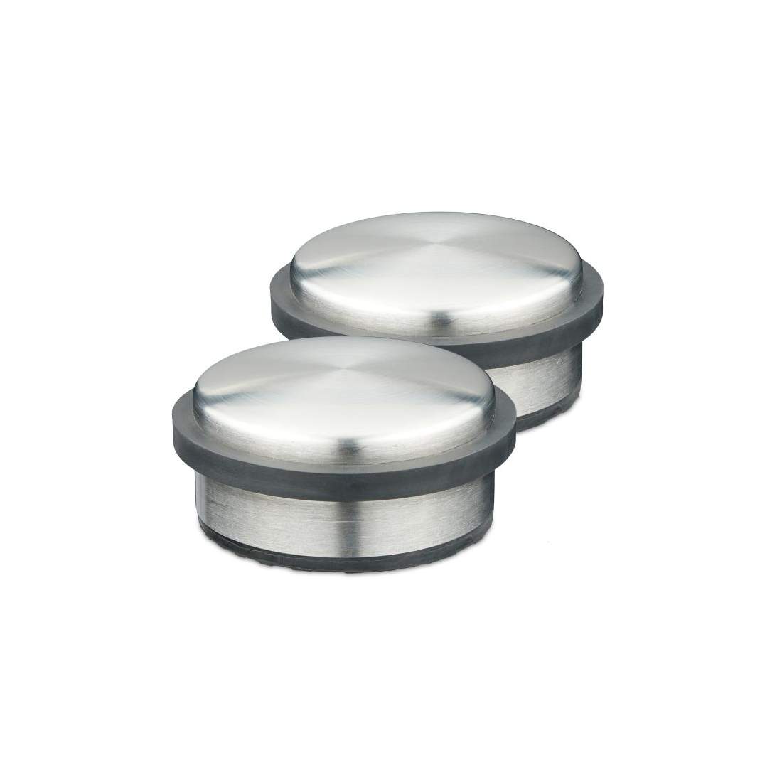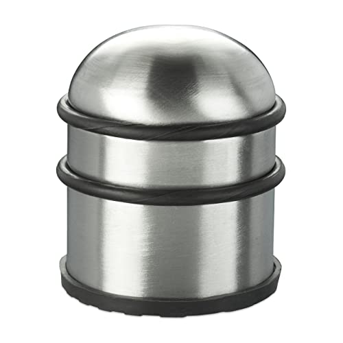 Relaxdays Dörrstoppare, för dörrar och fönster, av rostfritt stål och gummi, hög och rund, inomhus, golvbuffert, Ø 7 cm, silver, 1 styck