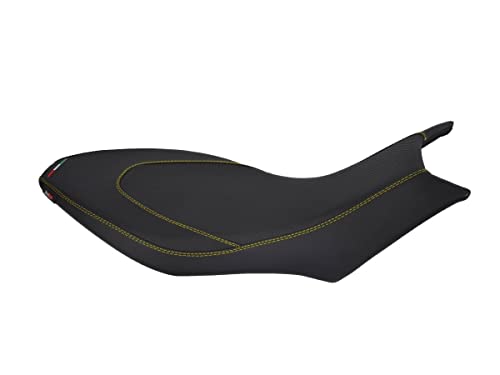 Sätesöverdrag kompatibelt med Aprilia Dorsoduro 750/1200 2008-2020 svart med gula sömmar (B)