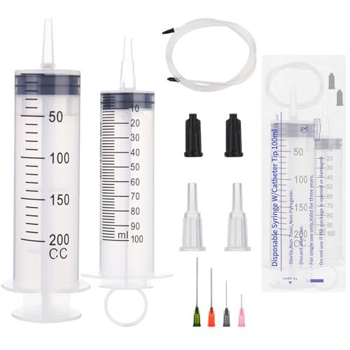 Aotfusd 2 stycken sprutor 100 + 200 ml, spruta med slang och trubbiga nålar, oljespruta, doseringsspruta, mätvätskor, växtbevattning, djurfoder, vetenskapliga laboratorier, industri