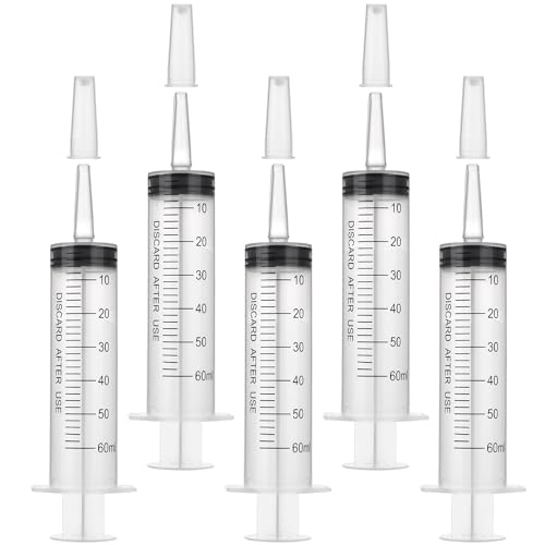 GOLDEROC sprutor 50 ml (60 ml), 5 stycken plastsprutor med lock, individuellt förseglad förpackning, återanvändbar doseringsspruta, lämplig för laboratorium, djurfoder, växtbevattning