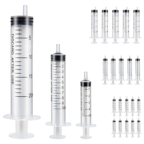20 stycken sprutor 3 specifikationer (5 ml/10 ml/20 ml) oberoende förpackning sprutor set utan nål plast injektionsspruta doseringsspruta för djurhållning kosmetika parfym och växtbevattning