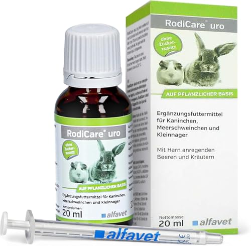 alfavet RodiCare URO, tilläggsfoder för att minska urinstenbildning för kaniner, marsvin och smågnagare, 20 ml, doseringsspruta