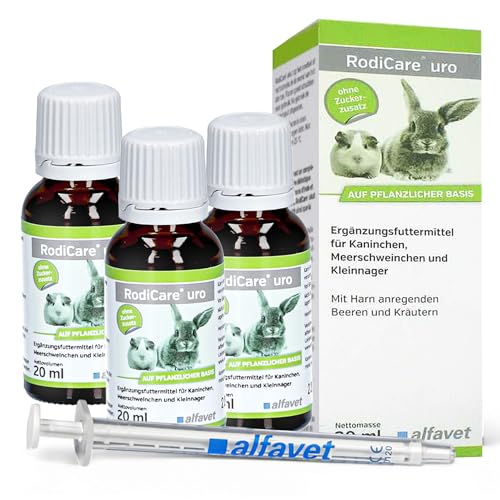 alvafet RodiCare URO, 3-pack, kompletterande foder för att minska urinstenbildning för kaniner, marsvin och smågnagare, 3 x 20 ml, doseringsspruta