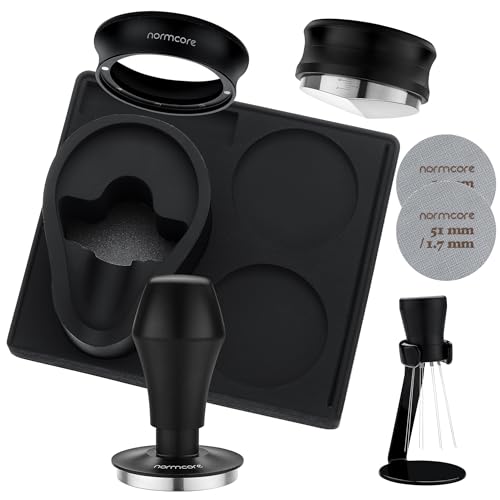 Normcore 51 mm 7-i-1 kompakt barista-kit: Kaffebryggare, distributionsverktyg, WDT, doseringstratt, puckskärm, tampmatta, portafilterstativ, barista nödvändighetskit för 51 mm Delonghi kaffemaskiner