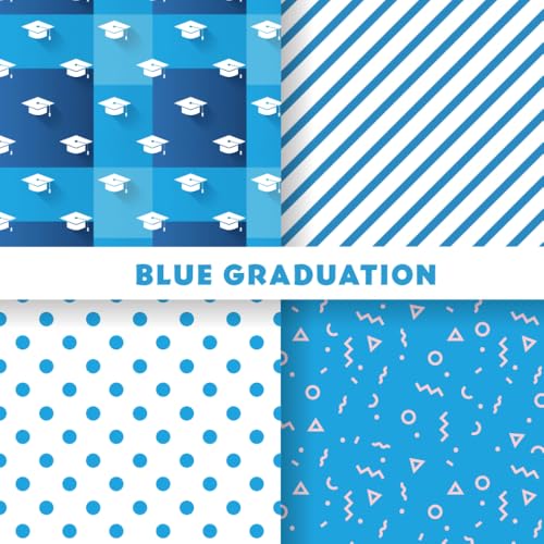 Blue Graduation scrapbook paper: Class of 2026 Craft Paper Pack with Graduation Caps, Blue and White Stripes, Confetti and Polka Dot Patterns | 8.5 x ... Card Making and DIY Party Decorations