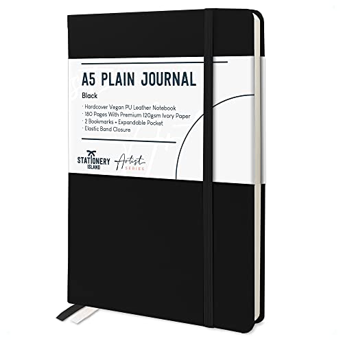 Stationery Island Anteckningsbok A5 – Hårt Omslag Prickig Anteckningsblock – Blank – 180 Sidor Bullet Dotted Journal Anteckningsbok – Svart Resedagbok 120 gsm Papper, För Resor, Ritning och Skissning