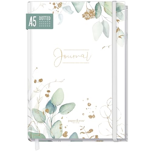 paper&you® dotted Journal A5 med elastiskt band "Bladguld" 156 sidor, prickad anteckningsbok, dagbok - hållbar & klimatvänlig