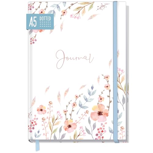 paper&you® dotted Journal A5 med elastiskt band "Sweet Flowers" 156 sidor, anteckningsbok, dagbok - hållbar & klimatvänlig