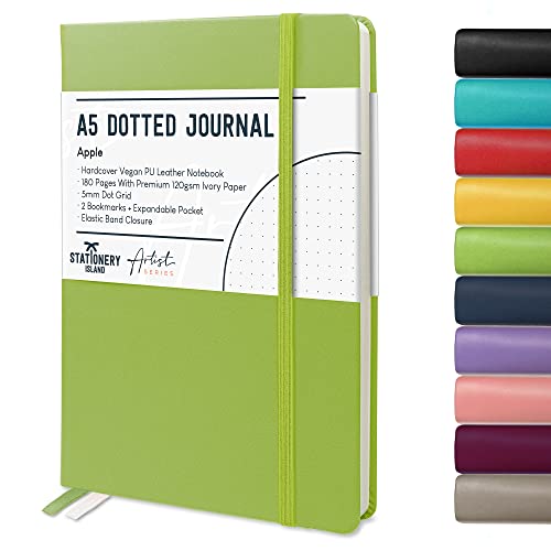 Stationery Island Anteckningsbok A5 – Hårt Omslag Prickig Anteckningsblock – äppelgrön – 180 Sidor Bullet Dotted Journal Anteckningsbok – Resedagbok 120 gsm Papper – För Resor, Ritning och Skissning