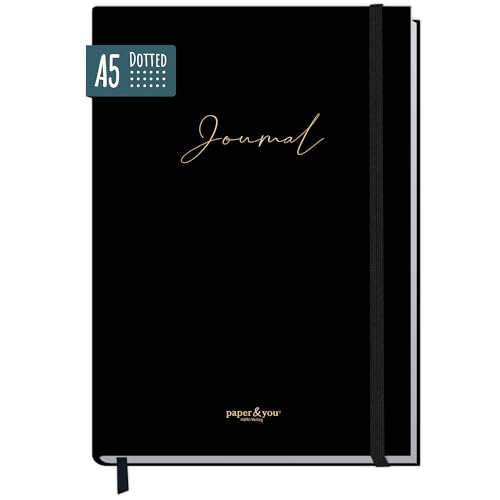 paper&you® dotted Journal A5 med elastiskt band "Black Edition" 156 sidor, anteckningsbok, dagbok - hållbar & klimatvänlig