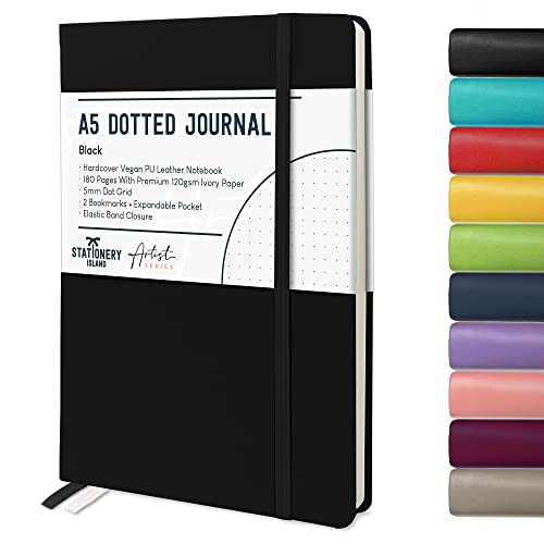Stationery Island Anteckningsbok A5 – Hårt Omslag Prickig Anteckningsblock – Svart – 180 Sidor Bullet Dotted Journal Anteckningsbok – Resedagbok 120 gsm Papper – För Resor, Ritning och Skissning