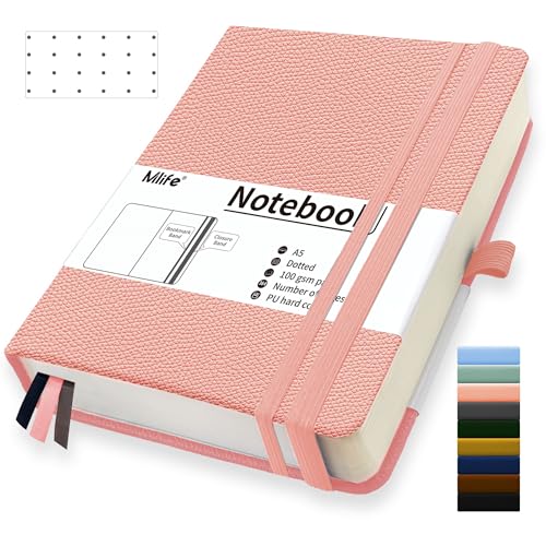 Mlife A5 Dotted Journal Notebook, 360 sidor och 100g/M² bläcksäkert papper, anteckningsblock med inbunden anteckningsbok, anteckningsböcker med vikficka för Office School Home Writing & Notes (rosa)