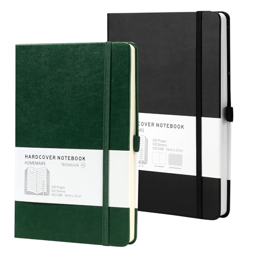 HOMEMARS Anteckningsbok, Journal, Dotted Journal A5 anteckningsbok, A5, Bullet Dotted Journal Prickig 200 sidor, 100GSM, Hårt omslag, Pennhållare, Bokmärken, Grön Svart