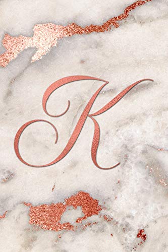 K: Letter K Dotted Matrix Notebook and Planner, Rose Gold on Rose Gold Marble, Personalized Bullet Dot Grid Journal Monogram Initial, 6 x 9
