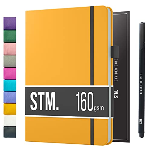 Bullet Dotted Journal Notebook från Scribbles That Matter | B5 Pro-version | Storlek 7 x 10 tum | Tjockt 160 gsm prickigt rutnätspapper | Veganskt läderskydd | Personlig organisatör för kvinnor och män | Senap
