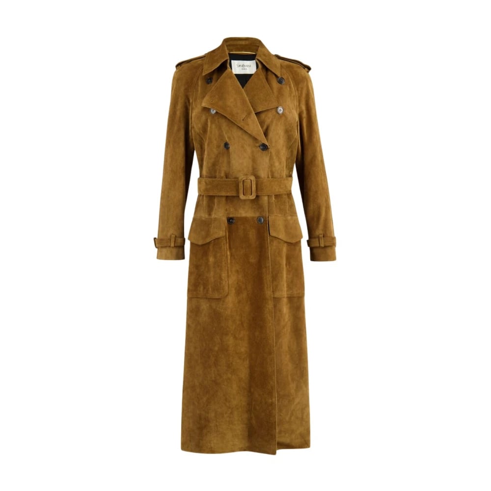 Saint Laurent, Kappor & Rockar , Dam, L, Bomull, Suede Double-Breasted Trench Coat