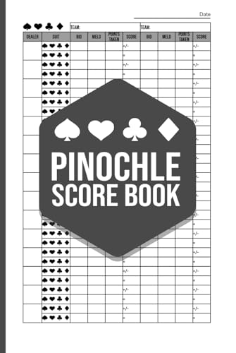 Pinochle Score Book – Score Sheets for 4 Players (Hardcover): Classic Pinochle Scoring Pad with 106 Pages for Double Deck and Team Play