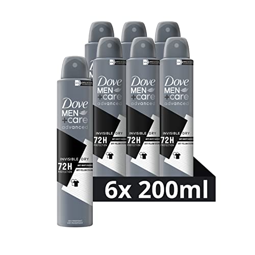 Dove Dove Men + Care Invisible Dry Spray Advanced Care, Deodorant för män, med 1/4 fuktgivande kräm, fuktgivande och fläckresistent formel, skydd i upp till 72 timmar, 6 stycken på 200 ml