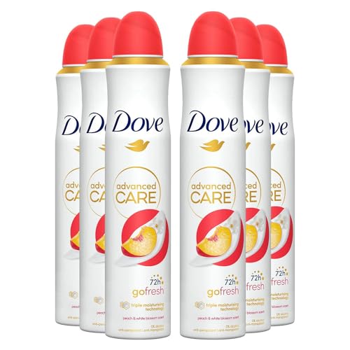 Dove Advanced Care Go Fresh Persika Deodorant Spray med fuktgivande och hudvänlig formel, alkoholfri, torr hud i upp till 72 timmar, deodorant för män och kvinnor, 6 stycken på 200 ml