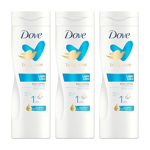 Dove Body Love Light Care Body Lotion återfuktande hudkräm med ceramide återställande serum för alla hudtyper 400 ml 3-pack