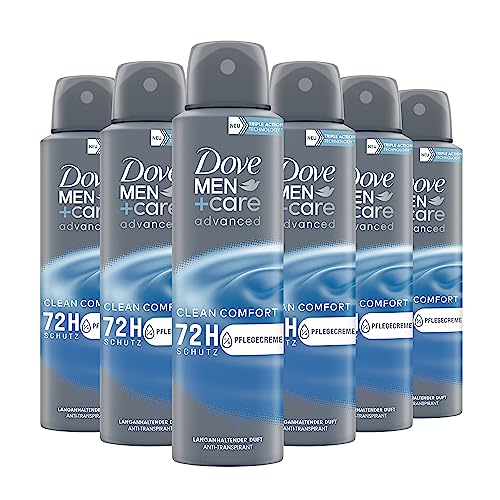 Dove MEN+care advanced Anti-Perspirant Clean Comfort Deodorant Spray skyddar 72 timmar mot kroppslukt och svett 6 x 150 ml