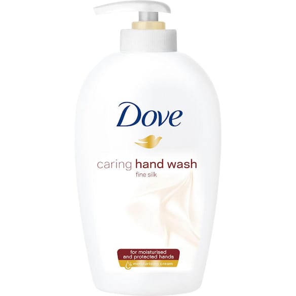 Dove, Handflytande tvål, fuktgivande handrengörande tvål, vård och skydd, avlägsnar med smuts och bakterier, med +5 fuktgivande medel, formel 99% biologiskt nedbrytbar, 250 ml