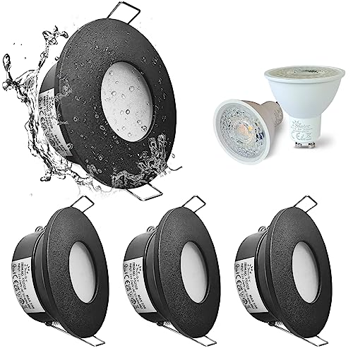 4XSweier IP65 Ceiling Light Black Recessed Ceiling Spot Waterproof Downlight 5W Warm White 3000K Ceiling Light Including GU10 Mount