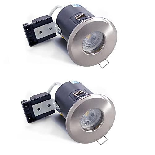 2XSweier 90 min brandklassade LED-infällda taklampor, vattentät IP65-spotlight, satin nickel gjuten aluminium (glödlampa ingår ej) Infällda spotlights, 230 V GU10 Downlight
