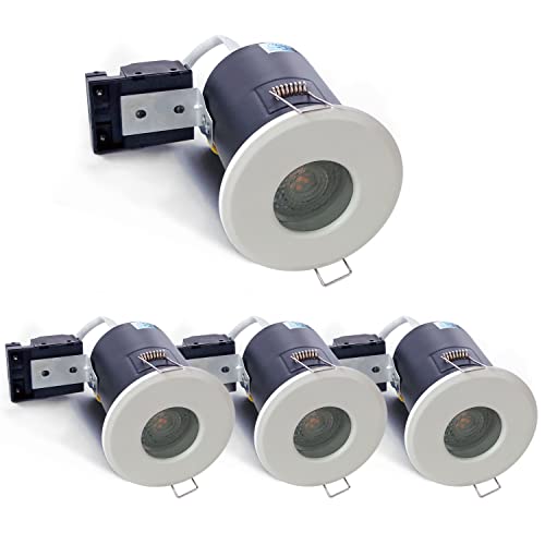 4XSweier 90 minuters brandklassad LED-downlights, IP65 vattentät badrumstakspotlight, 230 V GU10 downlight (glödlampa ingår inte) (vit, uppsättning med 4)