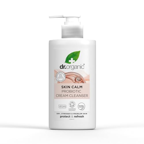 Dr. Organic Skin Calm Probiotic Cream Cleaner, för rodnad, torr hud, känslig, dermatologiskt testad, vegansk, grymhetsfri, parabenfri och SLS, 150 ml