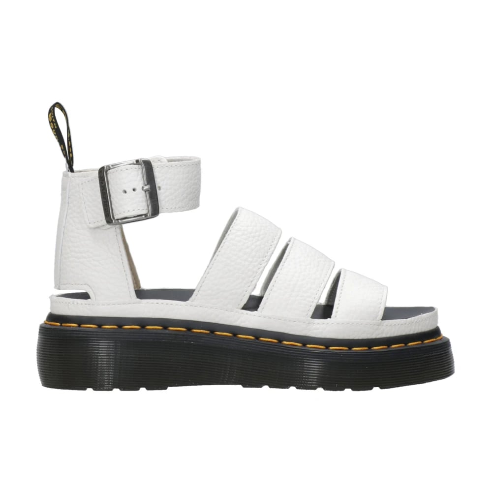 Dr. Martens, Skor , Dam, 36 EU, Läder, Vita, platta lädersandaler med justerbar ankelrem
