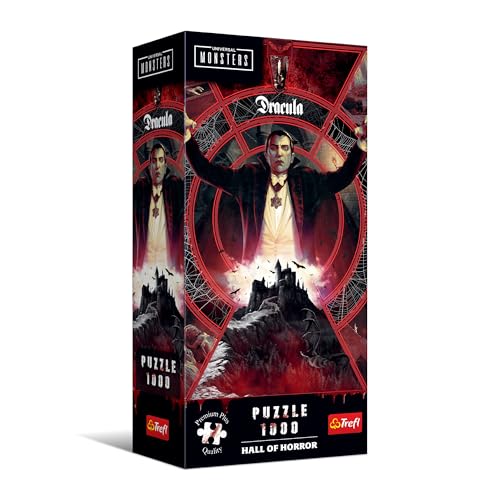 Trefl Premium Plus Quality - Hall of Horror Puzzle: Dracula – 1 000 bitar, en serie full av skräck och mörk atmosfär, perfekt passande bitar, för vuxna och barn från 14 år och uppåt
