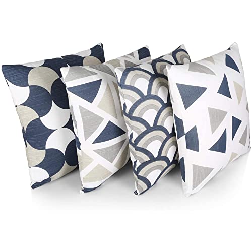 Penguin Home® 100% Bomull Dekorativa Dubbelsidiga Fyrkantiga Kuddfodral Med Osynlig Dragkedja 4-Delar, 45 cm Längd x 45 cm Bredd, Marinblå/Grå Mix